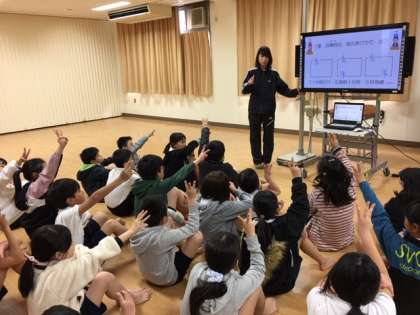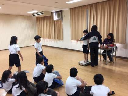 4年生の発育測定では、測定前に教室の換気について学習しました。クイズをしながら、換気するための効率的なやり方を学びました。また、換気だけではなく、湿度を上げるためのやり方も考えました。