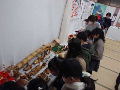 今年の作品展が始まりました。子どもたちの力作に、成長した姿が伺えます。今日(29日)から明日(30日)の9時〜16時30分まで、講堂にて展示しています。ぜひご覧ください。また、焼野福祉会館でも地域作品展を同時開催しています。見学した子どもたちは、大人が作った精巧な作品を見て、「自分も作ってみたい!」と目を輝かせていました。