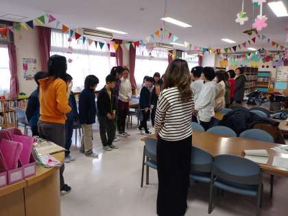 図書委員会が、児童を代表して、今年も図書室をボランティアで支えて下さった皆さまに、お礼と共に、感謝の気持ちを込めたカードを渡しました。図書ボランティアの皆さまには図書開放日のお手伝い、本の整理、読み聞かせ、季節ごとの飾りつけなど、さまざまな場面でご支援をいただきました。本当にありがとうございました。