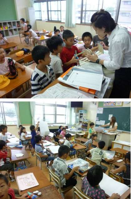 始業式のあと、各学級では通知表や宿題などを集めていました。とても大きな自由作品をもってきている人もいますね。見るのが楽しみです。