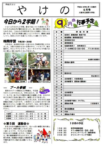 学校だより9月号を配布しました。ホームページにもアップいたしました。