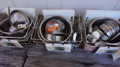 片づけの時間になりました。使った道具をピカピカになるまで磨いています。施設の方のチェックに合格するまでがんばります。