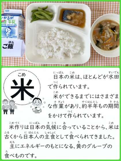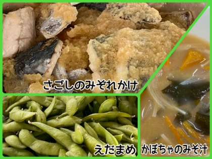 ?今日の献立は、さごしのみぞれかけ・かぼちゃのみそ汁・えだまめ・ごはん・牛乳でした。