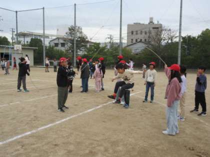 休み時間には、なわを片手に元気に運動場に出ていくたくさんの子どもたちの姿が見られます。