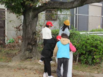 本日2時間目、各学年の2組がたてわり班で地域の清掃活動をおこないました。