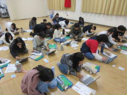 現在の地球の状態や自動車づくりの基礎知識を勉強した後、「環境を考える・会社の経営を考える」のふたつを両立させるにはどうしたらいいかを学びました。