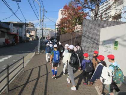 好天の中、全学年の児童が鶴見緑地に向け出発しました。