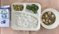 ?今日の献立は、豚肉のしょうが焼き・さつまいものみそ汁・きくなとはくさいのごまあえ・ごはん・牛乳でした。