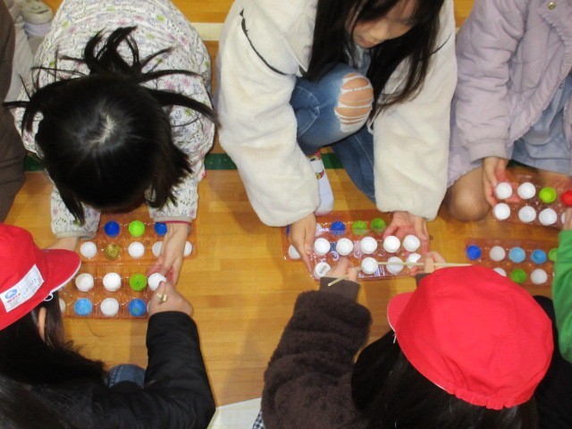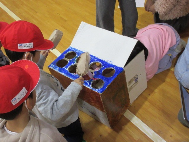 2年生が生活科の学習でさまざまな遊びを考えて準備をし、今日は1年生を招待しました。店員役の児童がやってきた1年生にルールを説明するところから始めます。1年生は、2年生のアドバイスを取り入れながら目一杯楽しんでいました。1年生が楽しんでいる様子を見て、2年生は一回り大きく成長している実感しました。今後もこのような隣接学年での関わりを大切にしてほしいと思いました。