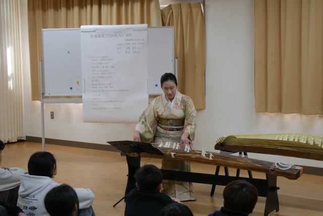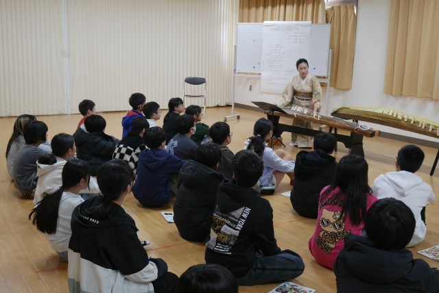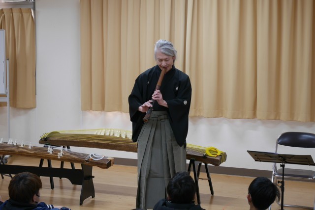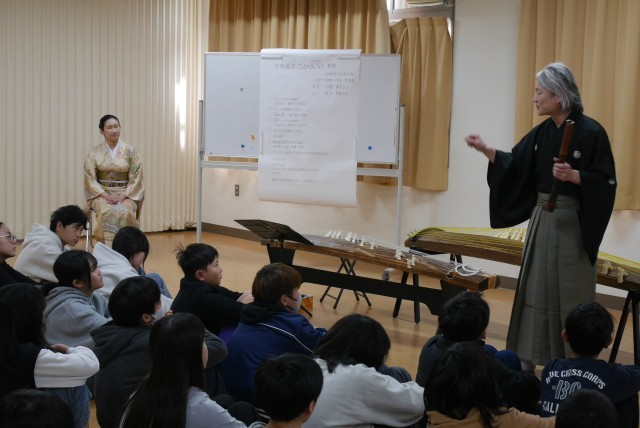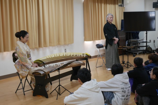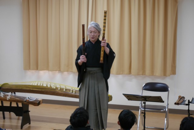 尺八奏者の川崎貴久(かわさきたかひさ)様と琴奏者の糀谷有桜(こうじやゆうおう)様による出前授業「琴・尺八教室」を実施しました。