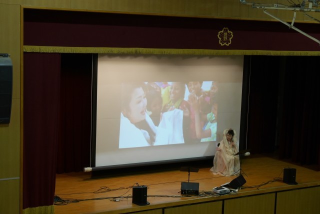 本日、歌手のミネハハさんにお越しいただき、児童に素晴らしい歌声を聞かせていただきました。