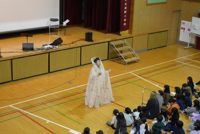 圧倒的な声量に児童たちは本物のすごさに圧倒されていました。