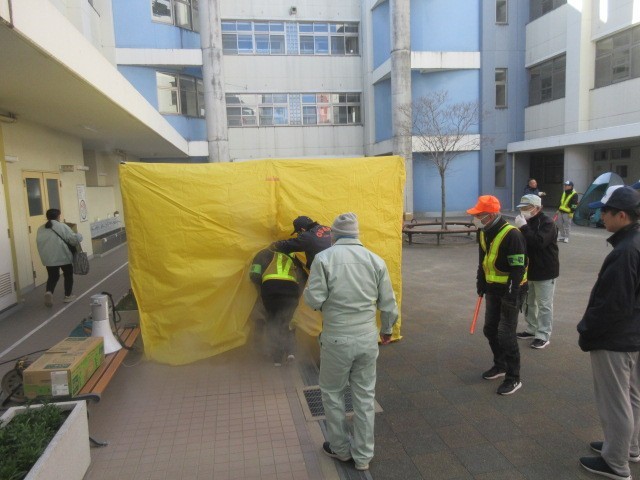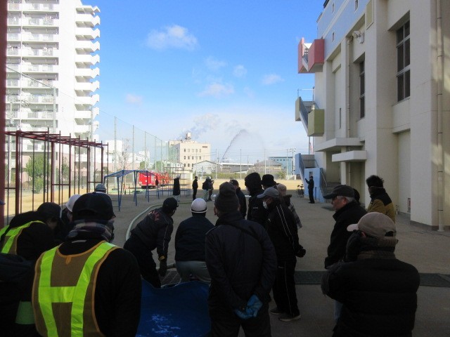 地域の防災リーダー主催による「焼野地域防災訓練」が寒空のもと行われました。日頃からの防災意識を高めることが目的で、鶴見消防者や区役所等の関係諸機関からのご協力もいただいております。火災が起きた時の「煙体験」、消火訓練、心肺蘇生や地震等大規模災害時の避難所での対応などのブースがあり、町会ごとに順番に体験されていました。自分の身は自分で守るために定期的に訓練を行い、災害時に備える大切さを改めて感じました。