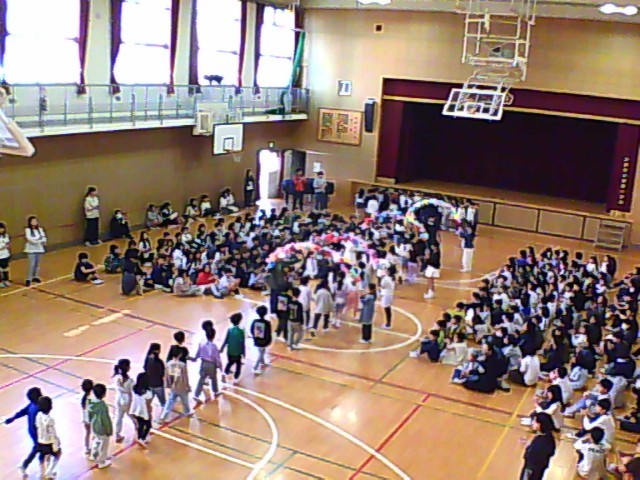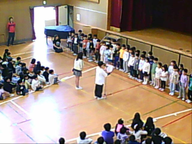本日、65名の1年生と2~6年生が初めて対面しました。温かい拍手の歓迎を受けて入場した後、校長先生や児童代表から歓迎の言葉をいただきました。「あいさつ」「人の話をよく聞く」の2つを大事に過ごしてほしいですね。2年生からは、一人一人にメダルのプレゼントがありました。その後、校歌のプレゼントもありました。新しい仲間を迎え、「やさしく けんこうで のびのびと」成長できるように1年生と接してくれることを願っています。