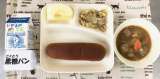 今日の献立は、ミートボールと野菜のカレー煮・ツナとキャベツのソテー・りんご・黒...