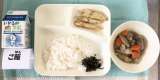 今日の献立は、さごしのしょうゆだれかけ・みそ汁・みずなの煮びたし・ごはん・牛乳...