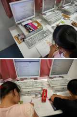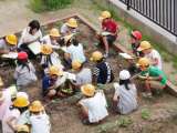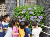 1年生の「ちぎって、はって、あじさい」の絵を作るために、本物のあじさいを観察し...