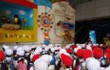 五月晴れの今日、焼野小学校10周年を祝う航空写真を、全員で人文字を作って撮影し...