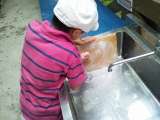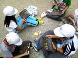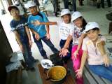 野外炊飯を終えて、今度は魚つかみで頑張りました。ぬるぬるで難しいけど、みんな一...