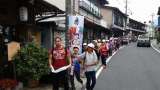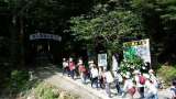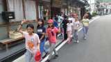 午前中の活動の自然散策に出かけます。まず、龍泉寺にきました。伝承のなで石にさわり...