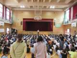 始業式では、児童絵画の表彰、生活指導に関わる話、校歌斉唱も行われました。