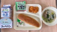 今日の献立 ● コッペパン ● みかんジャム ● 豚肉の香味焼き ● カレースープ ● カリフラワーとコーンのサラダ ● 牛乳 「豚肉の香味焼き」は、豚肉にワイン、塩、こしょう(粗挽)、オールスパイ...