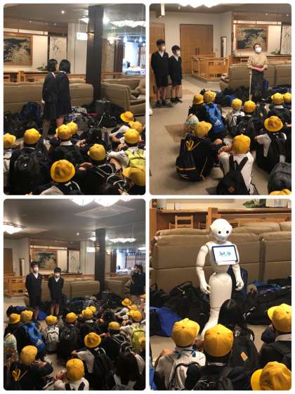 開舎式を行いました。ペッパーくん(カシコ)から宿舎利用について説明がありました。