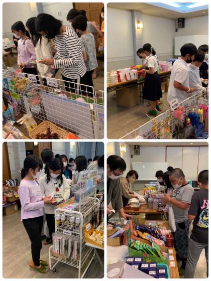 宿舎で家族の顔を思い浮かべながらお土産を買っています。どれにしようかと悩みながら選んでいる姿は微笑ましいです。