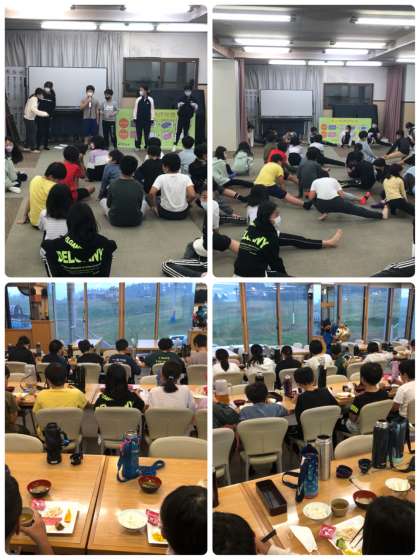 天候は小雨です。そのため朝の集いは室内で行いました。その後、朝食をとりました。