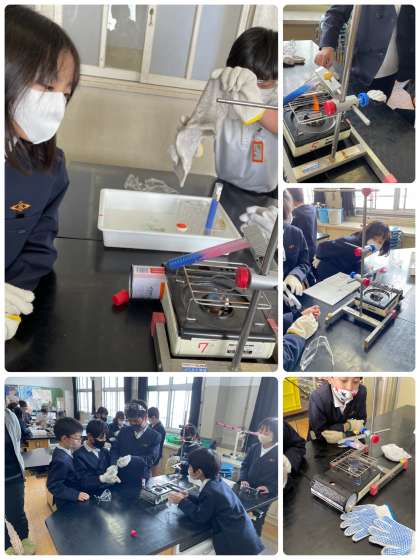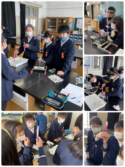 4年生の理科では水の温まり方の実験を行いました。試験管の底を熱する実験と試験管の水面を熱する実験では温まり方に違いはあるのか、予想を立てながら実験に望んだところ、両方にハッキリと違いが現れて子ども達は驚いていました。特に試験管の水面を、熱した実験は水面近くしか温まらず、試験管の底は冷たい水のままであったことを知り、驚いていました。