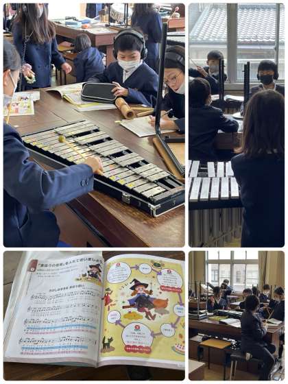 3年生の音楽科では、おかしのすきなまほうつかい、という曲の合奏の練習をしました。子ども達一人一人が自分のパートを真剣に練習していました。中には数人で音合わせをしているグループもいました。どの子ども達も演奏を楽しんでいました。