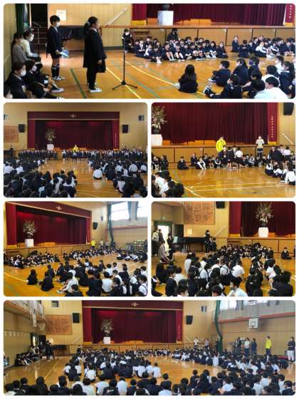 全校児童が体育館に集まり、1年生を迎える会を行いました。代表委員会が「高松小学校クイズ」を通して1年生に高松小学校のことを教えてくれました。会の最後に1年生全員で「よろしくお願いします」と元気よくあいさつをしました。