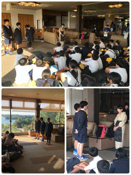 きれいな部屋や大きなお風呂、おいしい食事を提供してくれた宿舎の方へ感謝の気持ちを伝えました。次はいよいよスペイン村での活動です。