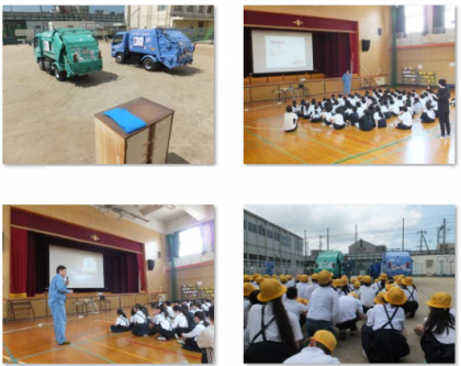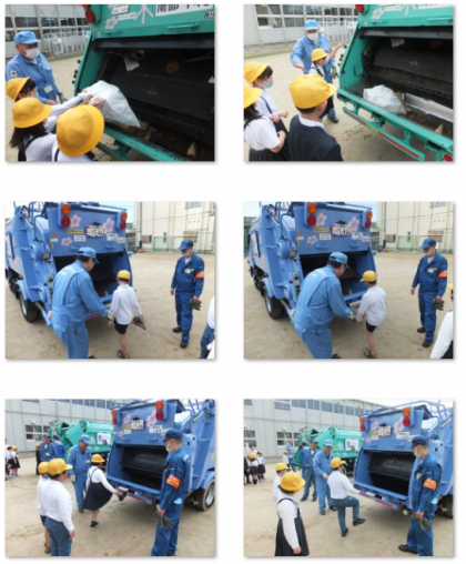 3時間目はパッカー車にゴミを捨てたり、その様子を見たりして車の工夫について学びました。