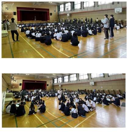今日の集会では自己紹介をして、好きな食べ物を伝えました。