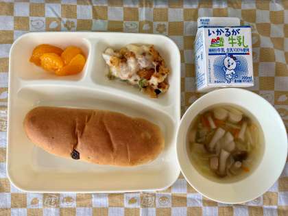 今日のマカロニグラタンには、牛乳・乳製品と小麦粉が使われています。