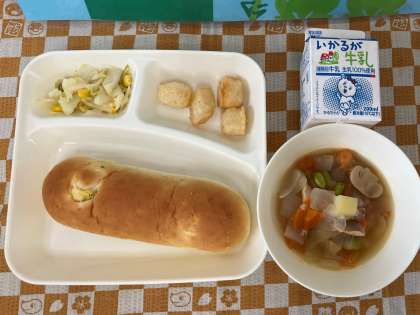 今日の給食では、「フレッシュトマトのスープ煮」に生のトマトを使っています。