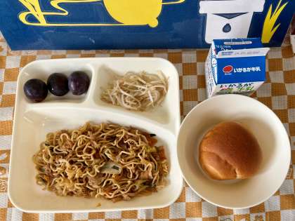 今日の給食は、オイスターソースを使った中華風の焼きそばです。