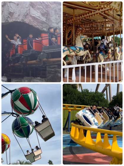 活動班で楽しく回っています。午前中なので人も少なく乗り放題です。