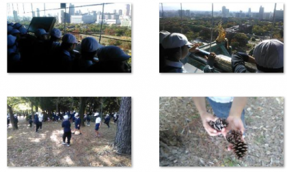 天守閣に昇り、大阪の街並みを見渡したり、自然の中で秋見つけをしたりしました。