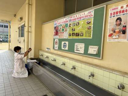 調理場の水道、給食室前の水道共に、『きれいなお水です!』と良い結果が出ました。