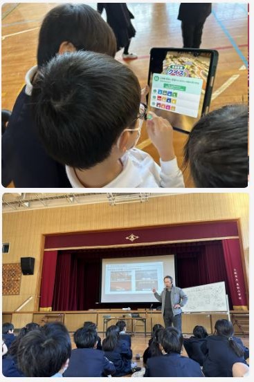 タブレット端末の画面を通して気候変動に関するクイズに取り組みました。