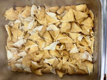 16分の1の三角に切ったうすあげを、焼き物機で煮ています。