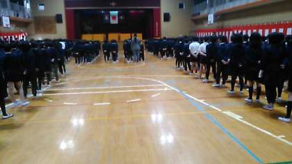 校歌斉唱では全校の気持ちのよい声が響き渡りました。