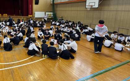 5月8日(木)に、今年度初めてのふれあい班による児童集会が行われました。「ふれあい班」とは、1年生から6年生までの異学年で編成した班になります。それぞれが自己紹介をしたり、簡単なゲームで交流したりしました。