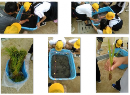 そのような学びを深めるために総合的な学習の時間と関連付けて米作りを行います。