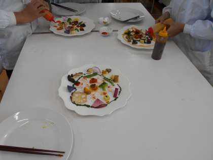 自分たちで作る工程や盛り付けする工程、そして食べる活動を通して、料理を視覚や味覚で味わうことができました。