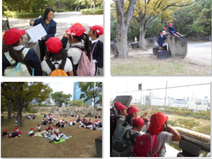 秋晴れの空のもと、大阪城公園へ遠足に行きました。