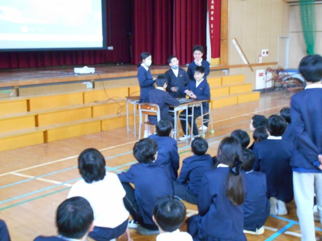 6年生の各グループが出し物を考え、みんなでお菓子を食べながら楽しく過ごしていました。