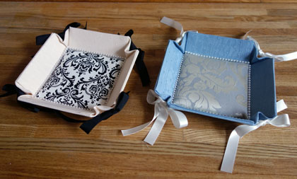 写真は、「カルトナージュ講習会」で作るリボントレーです。オシャレでしょう?